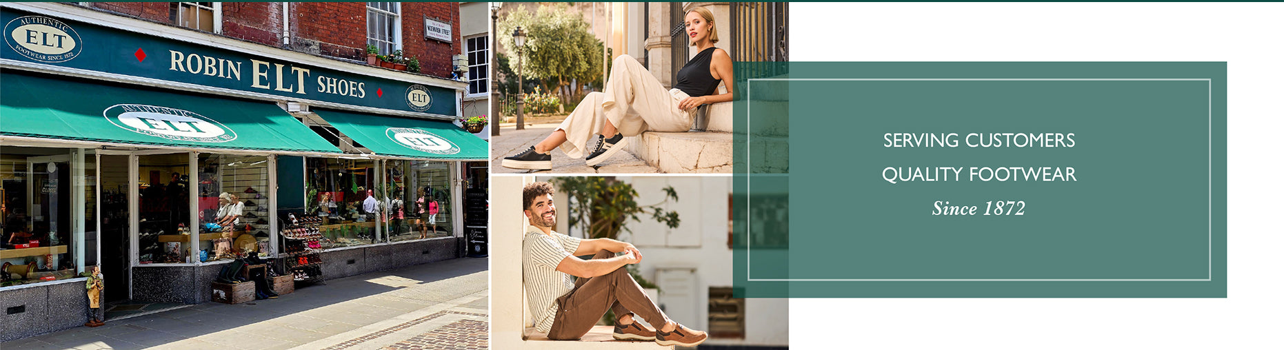 At Robin Elt Shoes we aim to offer the best customer service possible. Our family-run business offers our customers a fantastic choice across internationally renowned brands with quality at its heart, alongside sustainable options whenever possible. We've curated an exceptional collection of just about every style and type of footwear that can cater for every occasion - choose from a stylish pair of shoes or boots perfect for formal occasions to comfy slippers and sandals for more casual wear, through to cool trainers for sporting activities. Each season we introduce the latest brand-new ranges to compliment your latest outfit. Feel free to visit your local Robin Elt shoe boutique located throughout the South West and adjoining Midlands counties.
